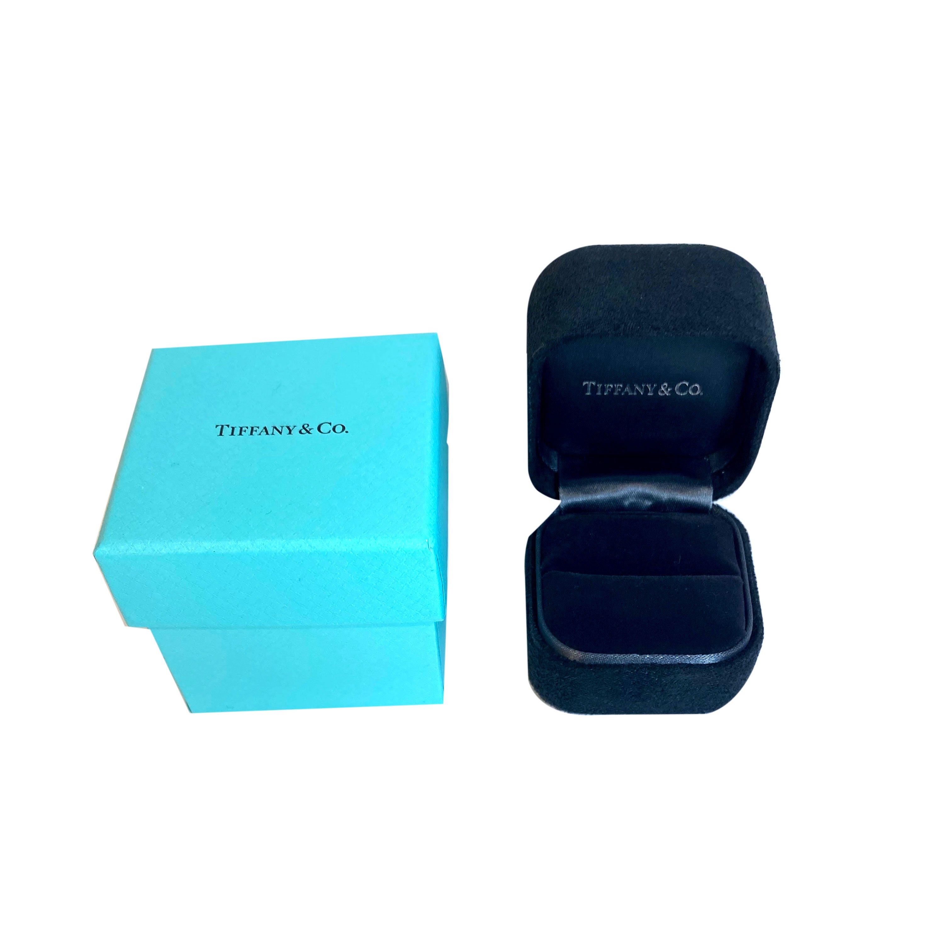 Retails for 8250 USD. In excellent condition and recently polished. Ring size is 6.Comes with Box,Pouch, and Tiffany Diamond Certificate. Comes with the original box and papers. (Out of stock)