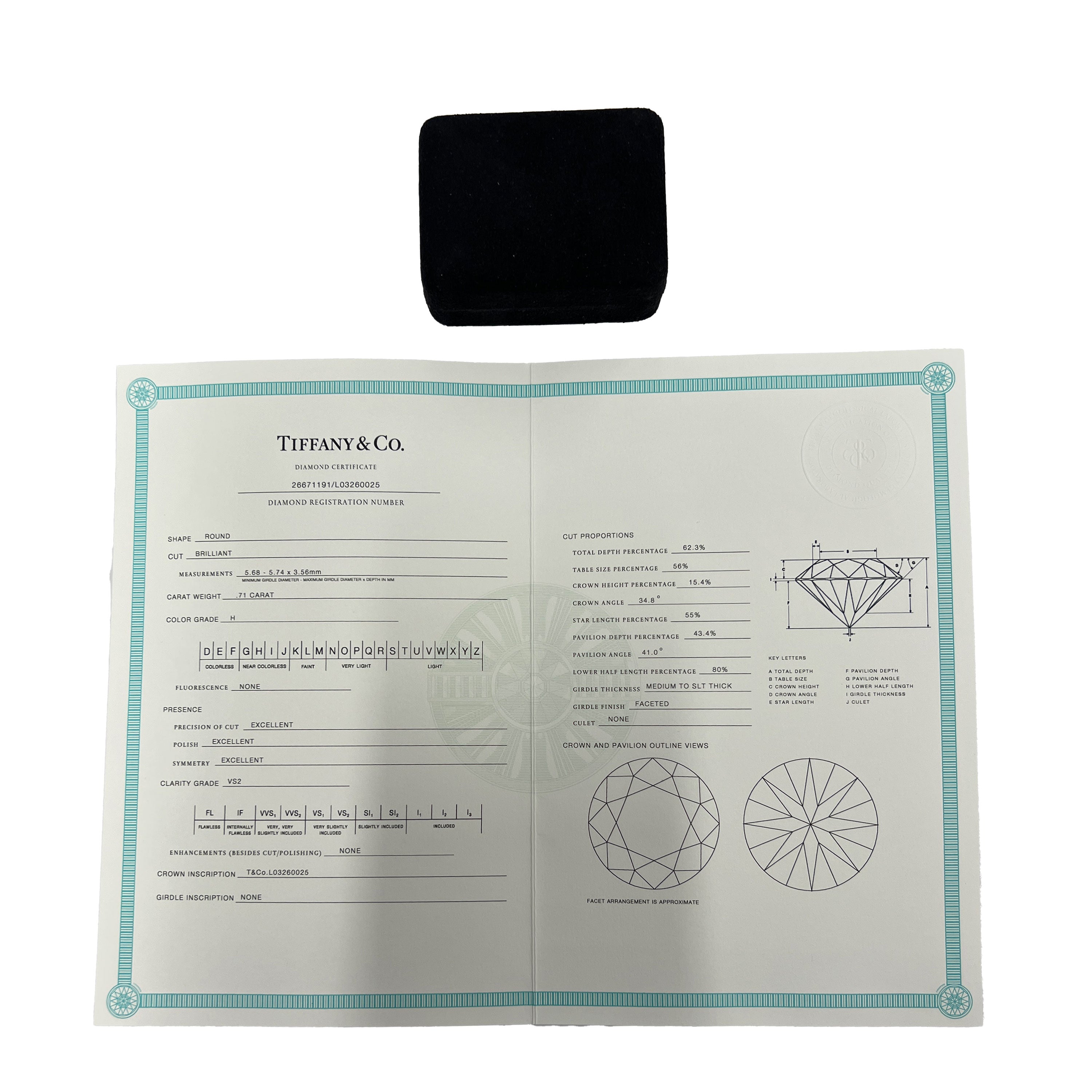 Retails for 11500 USD. In excellent condition and recently polished. Comes with Box;Tiffany Diamond Certificate; (Out of stock)