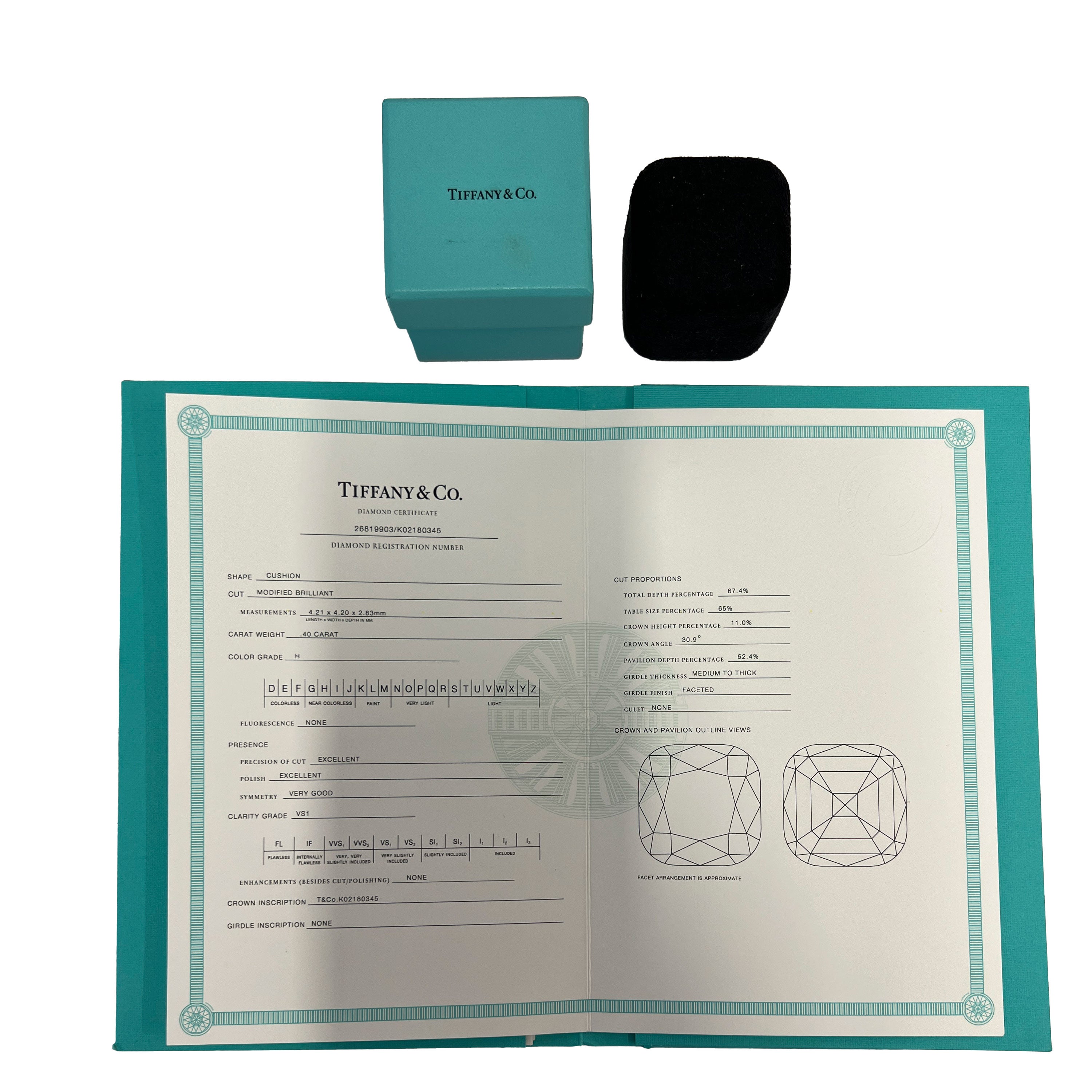 Retails for 6300 USD. In excellent condition and recently polished. Ring size is 6. Comes with Box;Valuation Report;Tiffany Diamond Certificate; (Out of stock)
