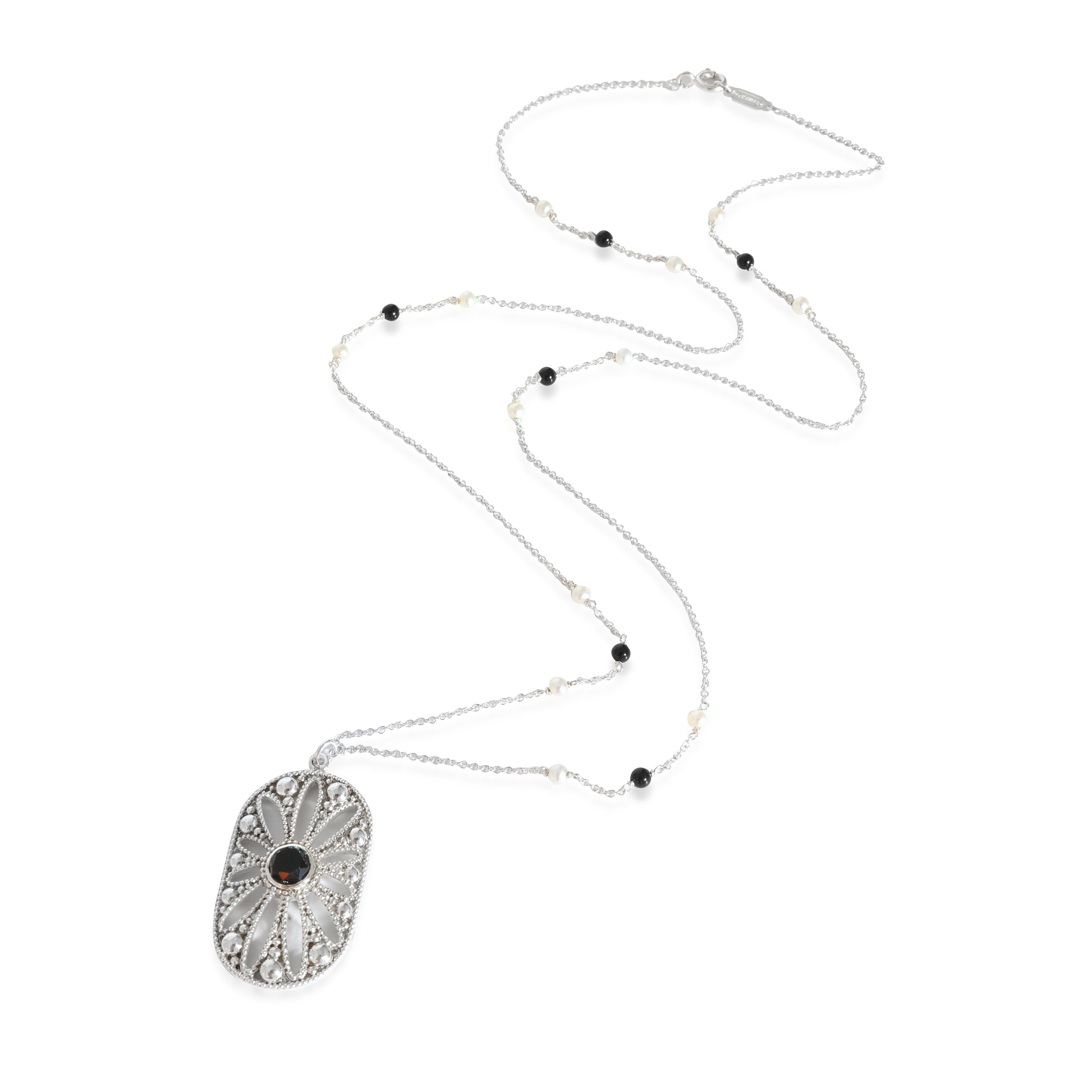 Tiffany & Co. Ziegfeld Pearl & Onyx Daisy Cartouche Necklace in Sterling Silver