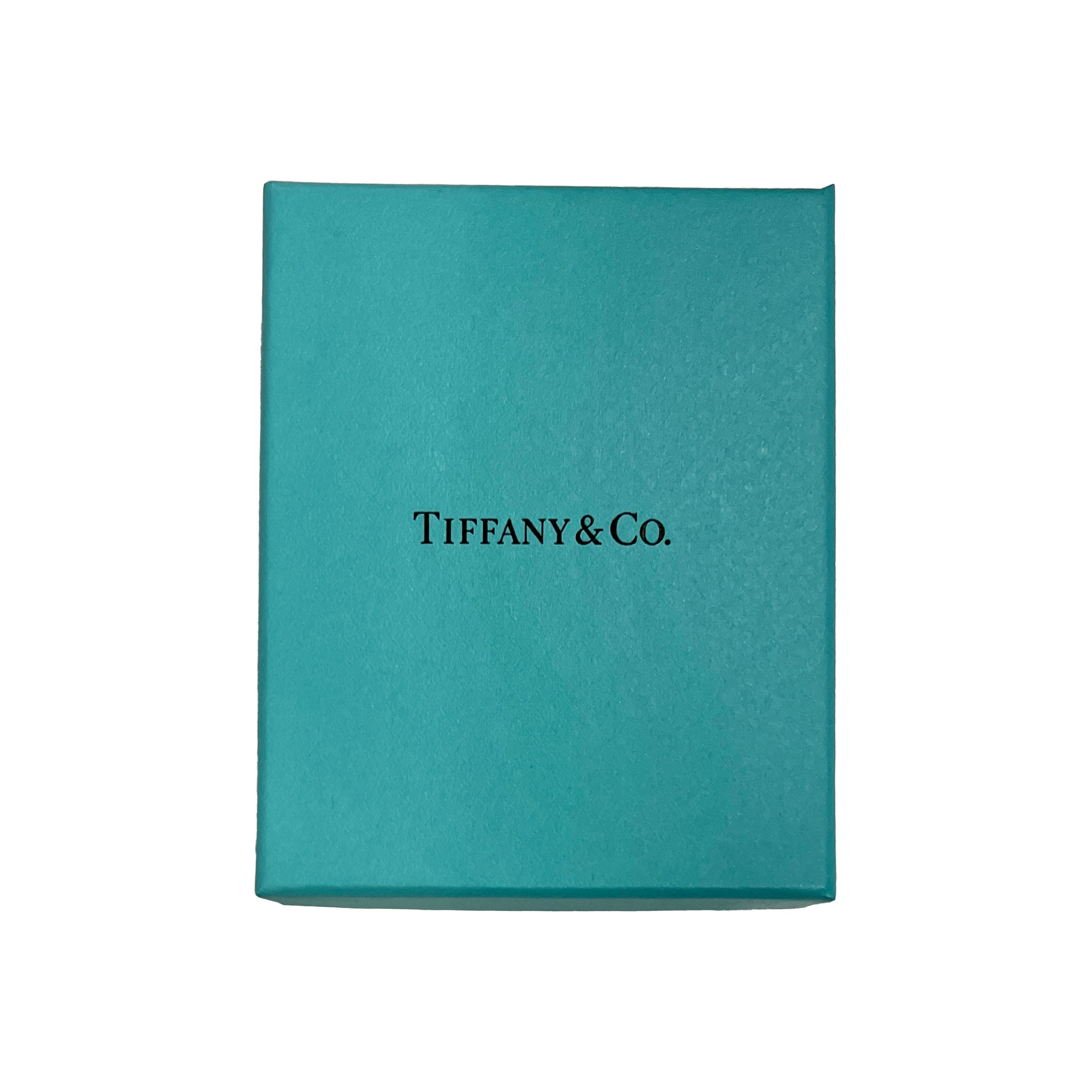 Tiffany reinvents a classic with the Return To Tiffany collection. Originally designed in 1969, the Tiffany keyring is the source of inspiration behind this line-up, which is defined by its engraved heart-shaped pendant. Retails for 450 USD. In excellent condition. 6.5 mm in length. Comes with Box;Pouch; (Out of stock)