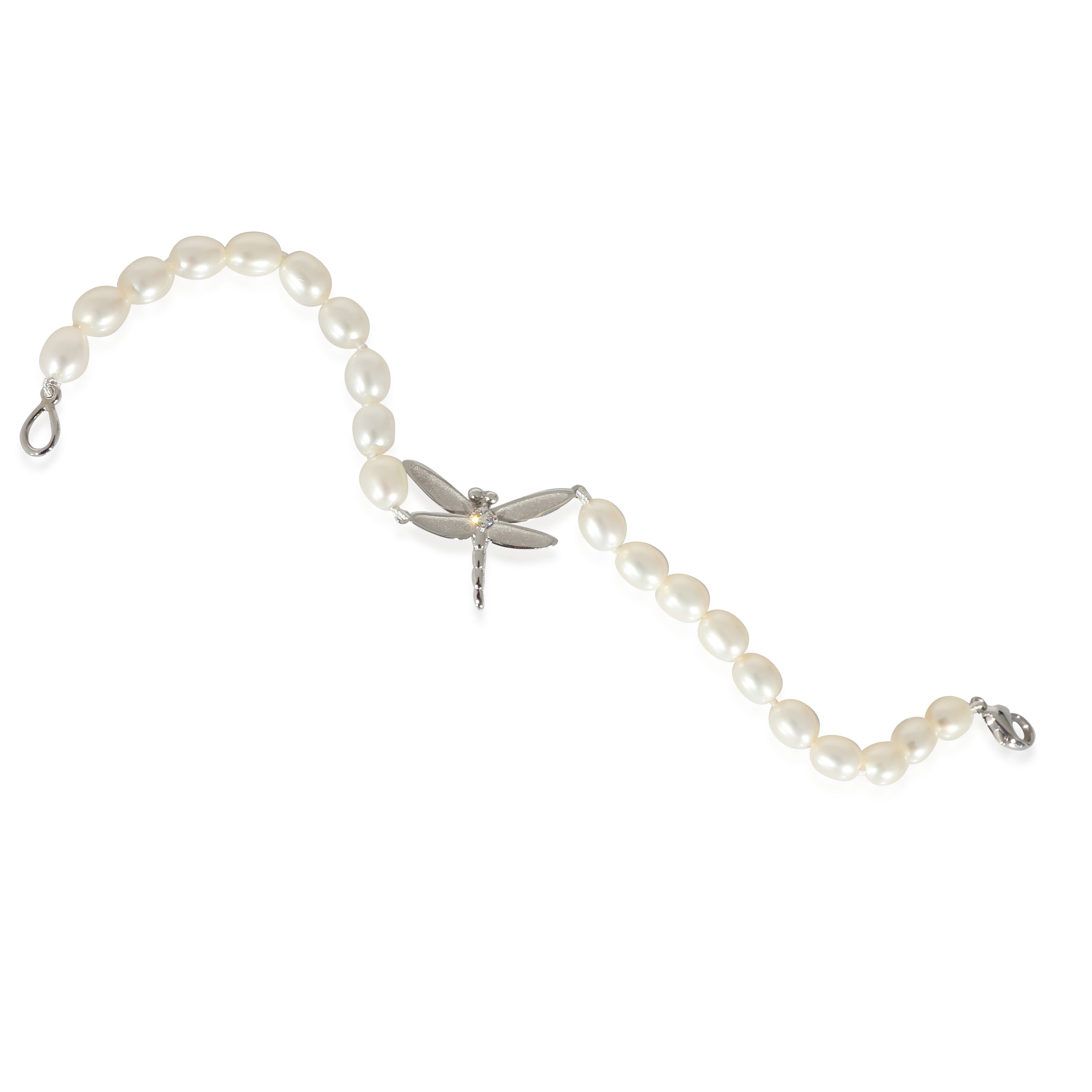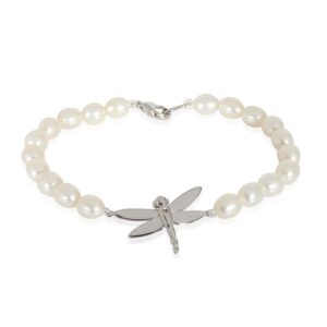 Tiffany & Co. Freshwater Pearl Bracelet With Dragonfly Charm in 18K White Gold