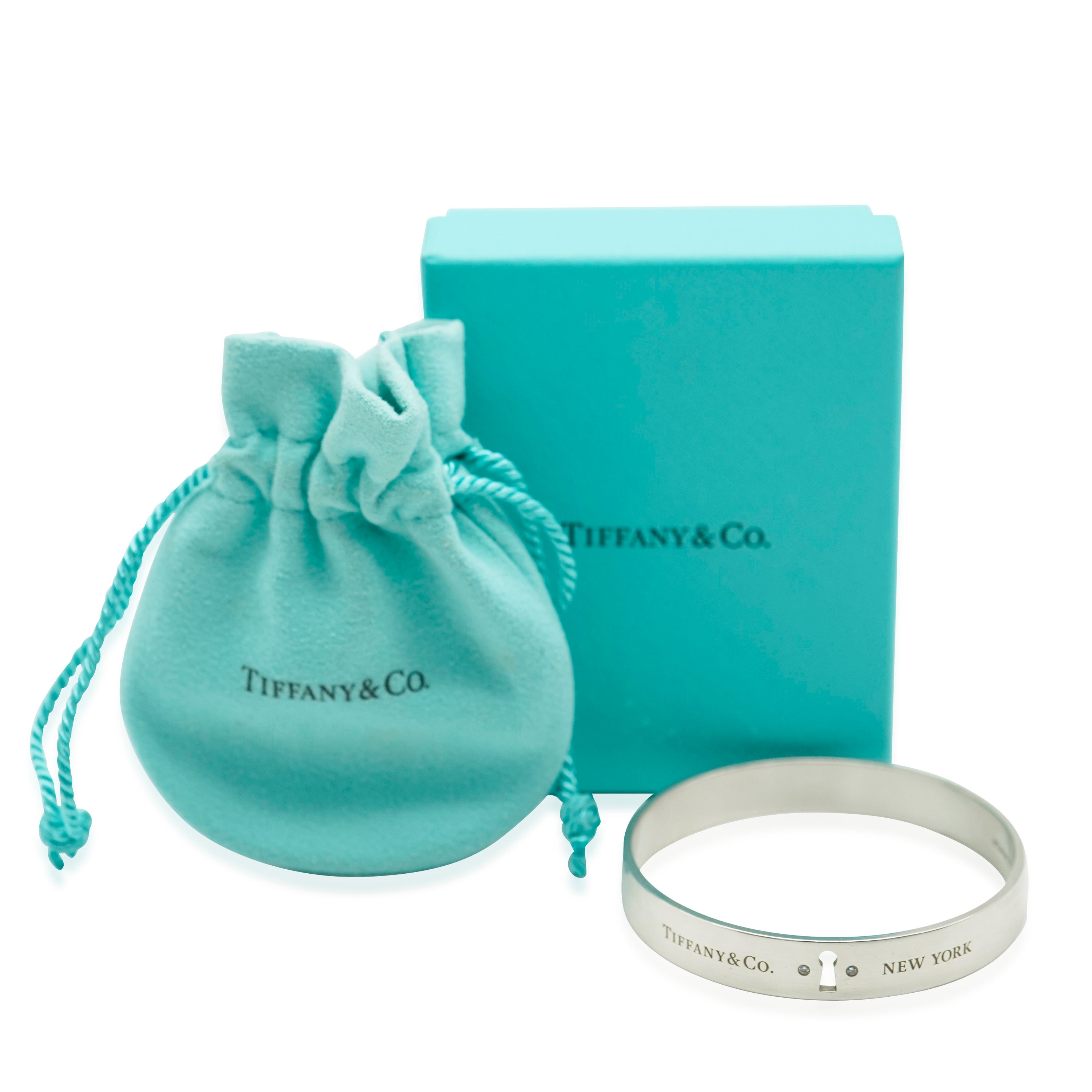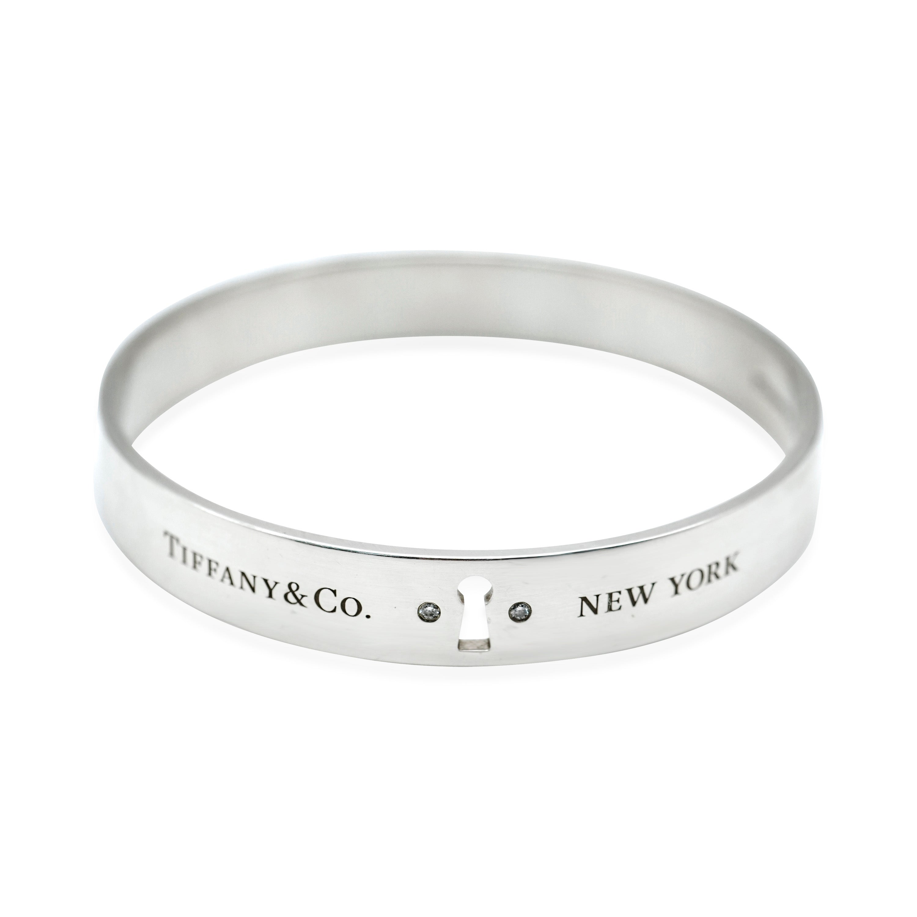 Tiffany & Co. Diamond Locks Keyhole Bangle Sterling Silver 0.02 CTW