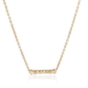 Fleur de Lis Bar Necklace in 18k Yellow Gold 0.04 CTW