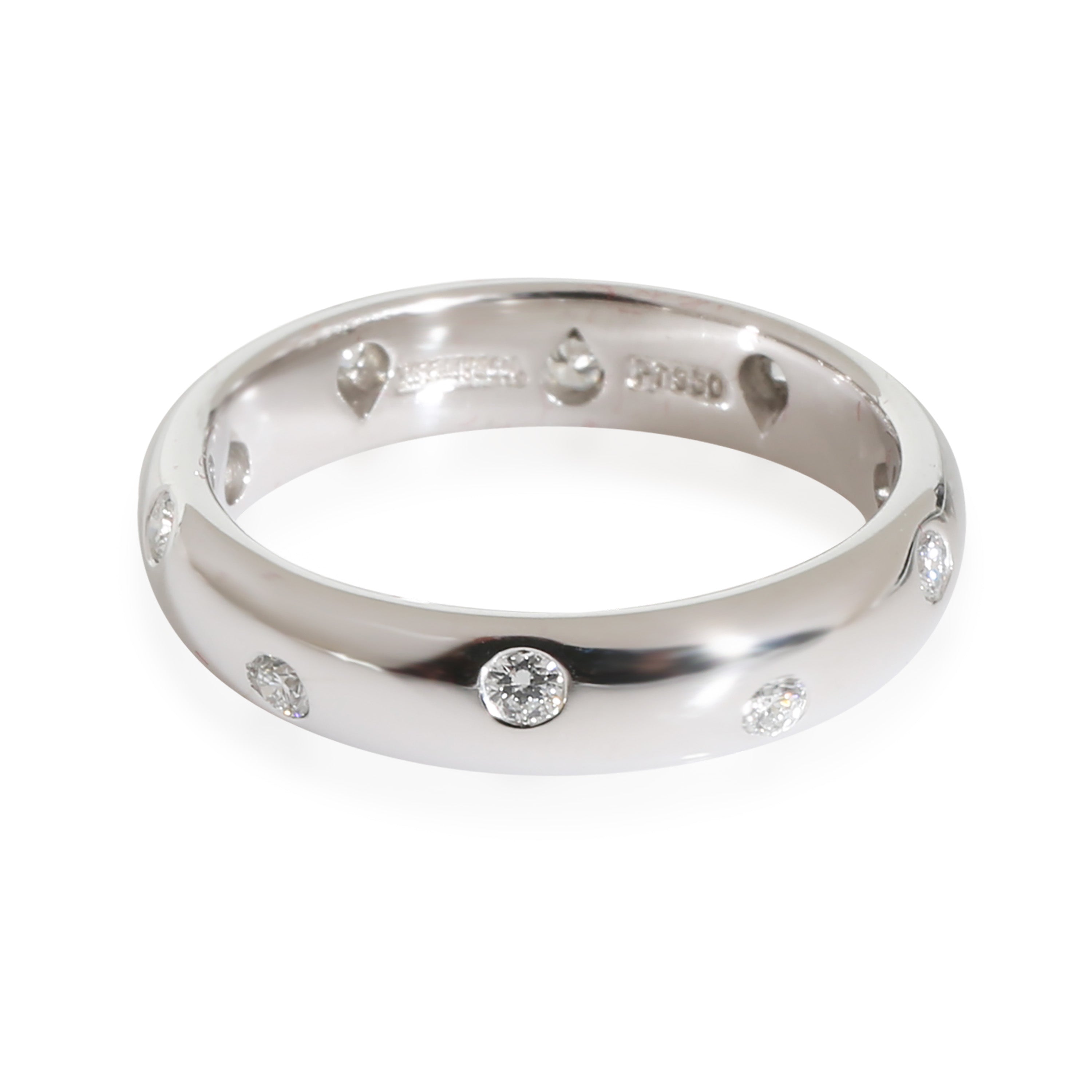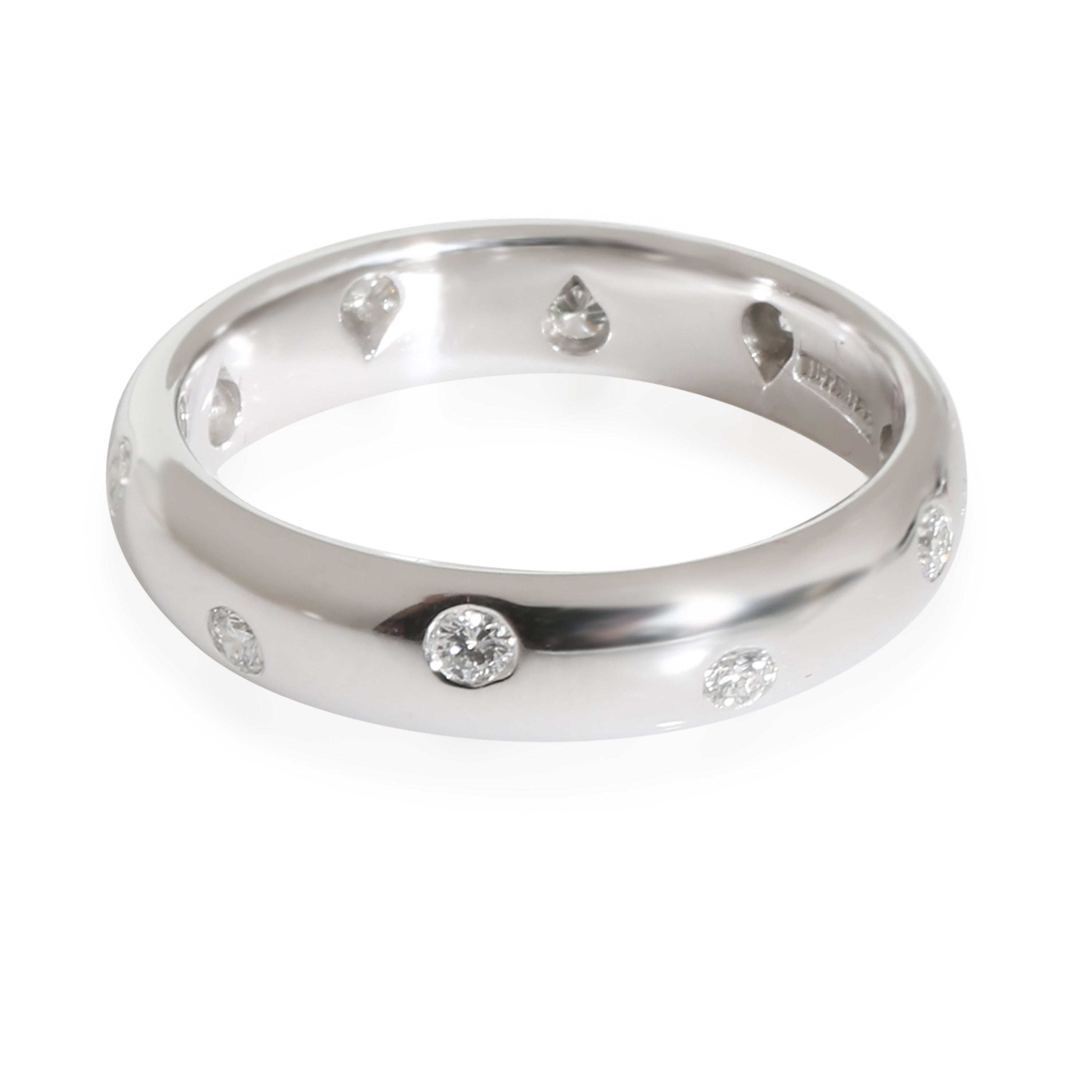Translated from French as ‘star’, the Etoile collection from Tiffany & Co. incorporates round white diamonds on a band ring to mimic the look of a starry night sky. Retails for 3000 USD. In excellent condition and recently polished. Ring size is 7. (Out of stock)