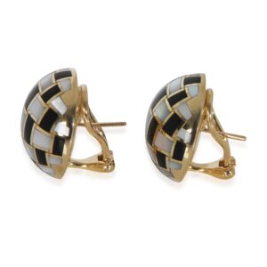Yellow Gold Mother Of Pearl and Onyx Mosiac Earrings